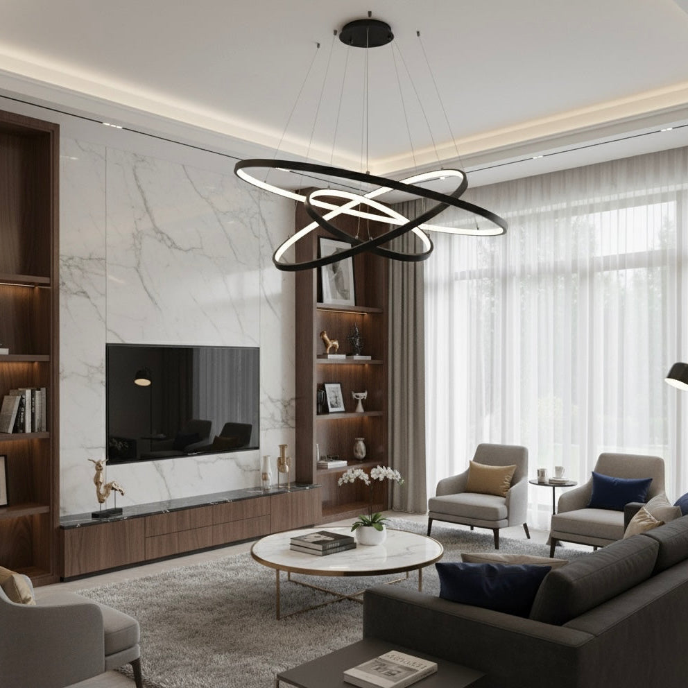 La lámpara Saturno combina el dinamismo de aros de luz con una alta calidad de materiales y tecnología LED de alta duración. Su diseño innovador y versátil permite crear una iluminación única y acogedora en cualquier espacio.