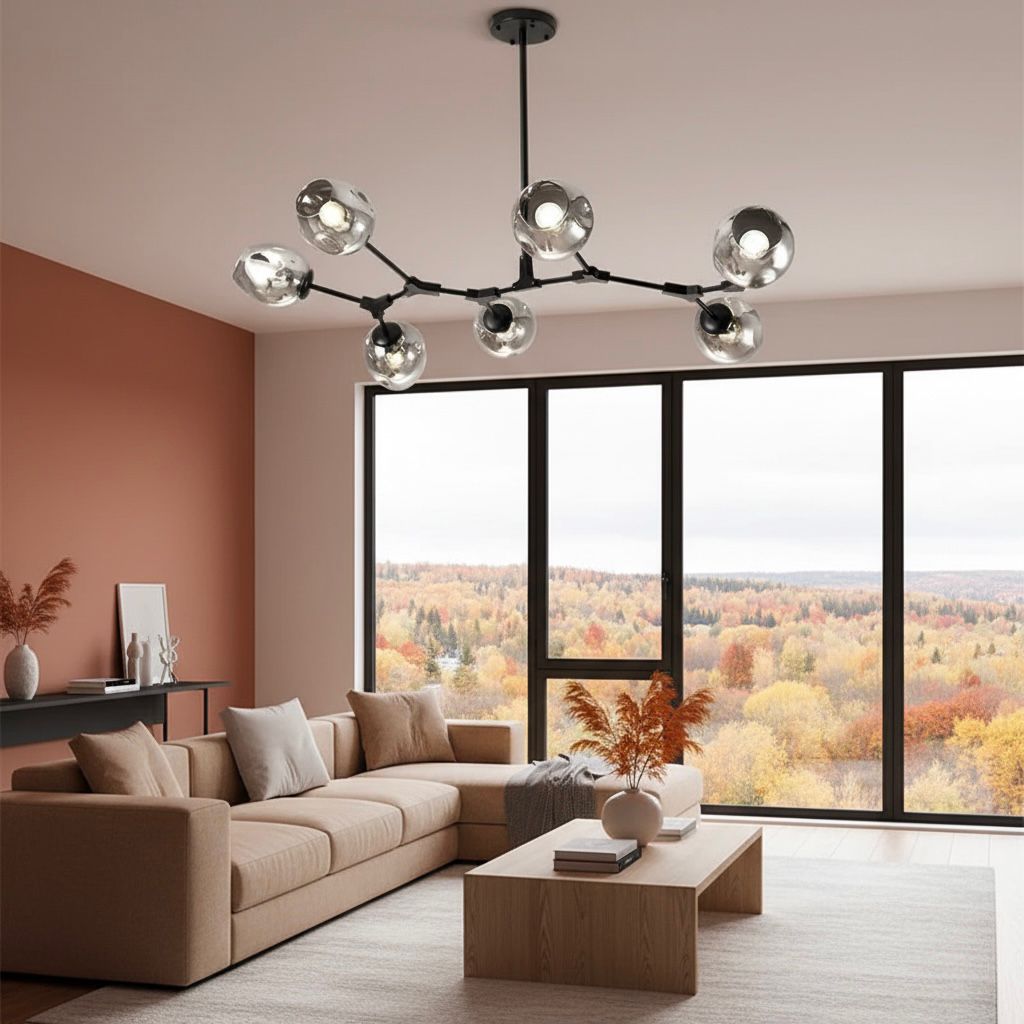 La luminaria Molecular es una pieza de iluminación impresionante con cabezas de vidrio iluminadas y brazos metálicos versátiles que brindan una elegancia y belleza únicas a cualquier espacio.